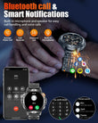 Llamadas Bluetooth y notificaciones inteligentes: los relojes inteligentes PODOEIL Bluetooth para hombre son compatibles con la mayoría de iOS 8.0 y Android 4.4 y superiores. Con un altavoz de alta fidelidad integrado y micrófono, es compatible con Bluetooth para hacer y recibir llamadas, recibir alertas de mensajes y asistentes de voz, liberando tus manos de tu teléfono celular y permitiendo una comunicación más libre. Nota: Si no desea que el sonido de su teléfono celular salga del reloj, desactive "Media Audio" en el reloj inteligente. Pantalla AMOLED HD de 1.43 pulgadas: experimenta impresionantes imágenes en la pantalla AMOLED de alta definición de 1.43 pulgadas con una resolución nítida de 466 x 466 píxeles. Los colores son más vibrantes y vivos en comparación con las pantallas OLED tradicionales, ofreciendo una experiencia visual excepcional tanto si estás bajo la luz solar brillante como con poca luz. 【Durabilidad de grado militar y resistente al agua IP68】Este reloj inteligente de grado militar está diseñado para soportar los entornos más duros, diseñado para temperaturas extremas, resistencia al polvo y pulverización de sal, garantiza durabilidad contra golpes, agua y polvo. Con una clasificación de impermeabilidad IP68, es perfecto para el uso diario como lavarse las manos, ducharse o caminatas lluviosas, por lo que es un compañero confiable tanto para aventuras al aire libre como para condiciones de trabajo difíciles. (evite usarlo para bucear). Batería de 530 mAh y linterna integrada: equipado con una batería de grado militar de 530 mAh, este reloj inteligente ofrece de 5 a 10 días de uso y hasta 45 días de espera en solo 2-3 horas de carga. También cuenta con una linterna incorporada, por lo que es una herramienta esencial para acampar, senderismo y actividades nocturnas. Ya sea que estés en una emergencia o necesites luz adicional durante problemas con el automóvil, este reloj inteligente garantiza que siempre estés preparado. Más de 100 modos deportivos: este reloj deportivo para hombre soporta más de 100 modos deportivos, incluyendo correr, yoga, senderismo, ciclismo y más, ya sea que estés practicando yoga en interiores o corriendo por la ciudad, este reloj inteligente de fitness proporciona un seguimiento detallado de la duración, la frecuencia cardíaca, los pasos y las calorías quemadas, lo que te ayuda a crear planes de entrenamiento específicos para un ejercicio efectivo y científico. Seguimiento de salud 24/7: este reloj inteligente con rastreador de salud cuenta con sensores ópticos integrados que monitorean continuamente tu SpO2, frecuencia cardíaca, presión b1ood y calidad del sueño. El rastreador de sueño proporciona un análisis en profundidad de las etapas del sueño, la calidad y la duración para ayudarlo a tomar decisiones informadas que nutren su bienestar. Con el seguimiento 24/7, obtiene información para cultivar un estilo de vida más saludable. Reloj inteligente multifunción: repleto de características esenciales para mejorar tu vida diaria, este reloj inteligente incluye un asistente de voz, pronóstico del tiempo, control remoto de cámara, control de música, esferas de reloj personalizables, alarma, cronómetro, calculadora, recordatorios sedentarios y alertas de agua de bebidas. Con su funcionalidad versátil, este reloj hace que tu día sea más fácil, más agradable y más eficiente. (Para garantizar la precisión y las actualizaciones en tiempo real de los datos de previsión meteorológica, la aplicación "FitCloudPro" debe ejecutarse continuamente en segundo plano en su teléfono).
