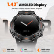 WalkerFit Reloj inteligente militar resistente para hombre, 1.43 pulgadas, reloj inteligente AMOLED, siempre encendido, resistente al agua 3 ATM para nadar, monitor de sueño preciso de recursos